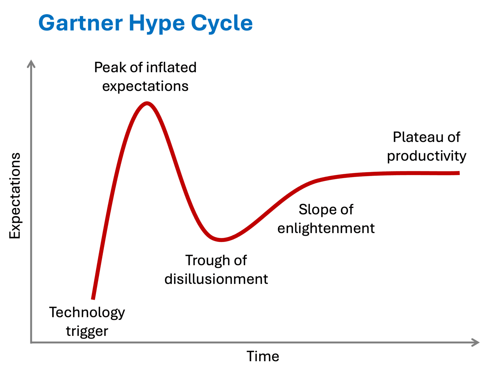 While AI is surrounded by significant hype—and, as with many technological bubbles, inflated expectations may give way to disillusionment—the underlying transformation is real and irreversible.